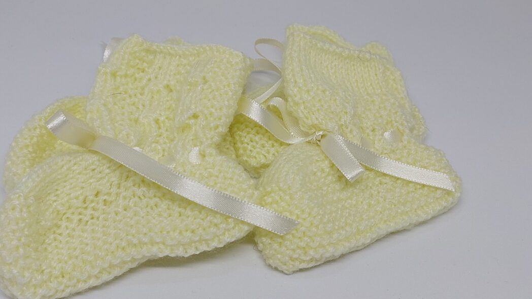 Sapatinhos em tricô amarelinhos: R$ 35,00 cada um.