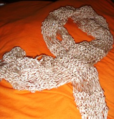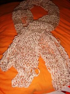 Terminei mais um cachecol de tricô; simples e rápido de fazer; foi feito com dois fios, um fio anne e outro com brilho ambos com a mesma tonalidade;