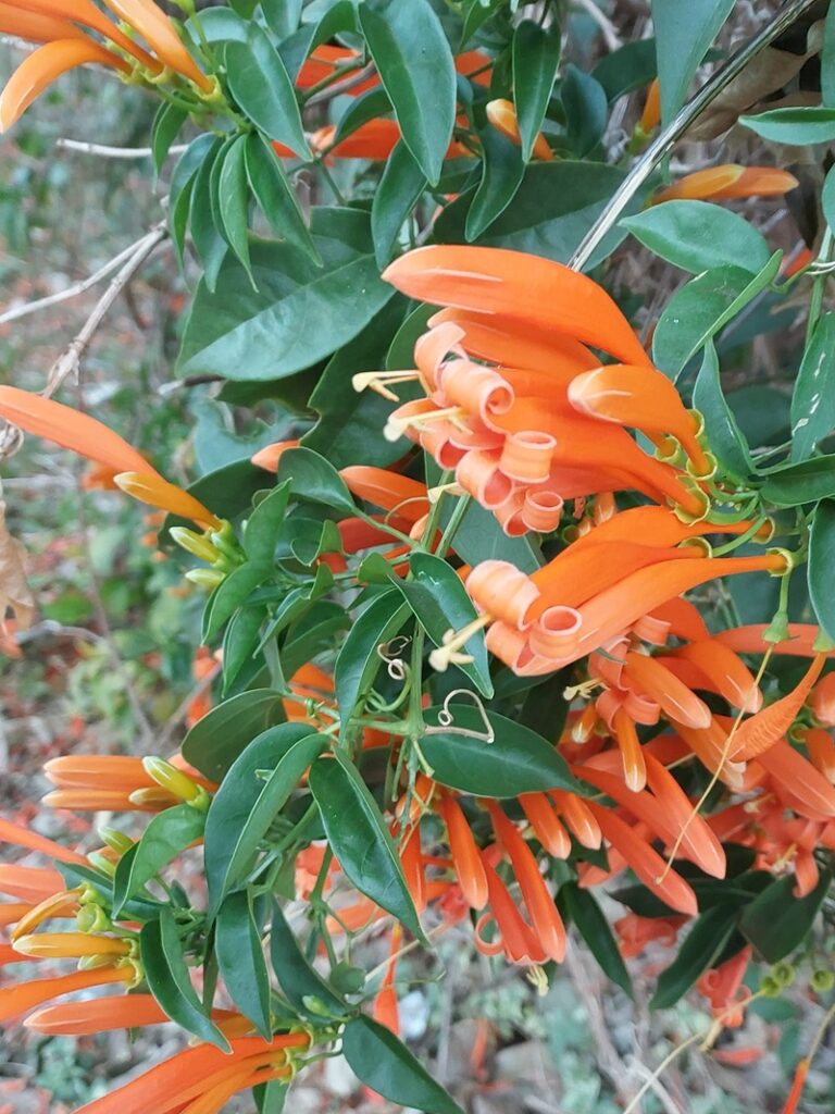Na caminhada diária é impossível eu não notar a trepadeira Cipó de São João. Essa planta vigorosa cobre muros, cercas e se espalha sobre outras árvores, chegando ao ponto de ter mais cipó à vista do que a própria árvore.