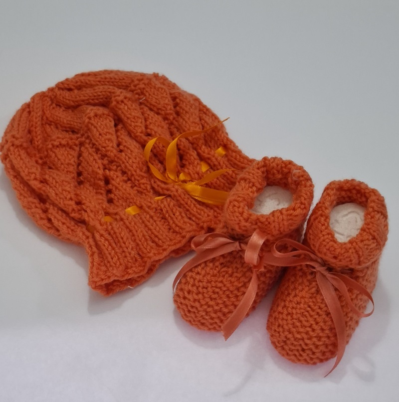 Conjuntinho de tricô para bebê, formado por gorrinho e sapatinho, feita com amor e cuidado, visando proporcionar elegância, conforto e aconchego para o seu bebê.