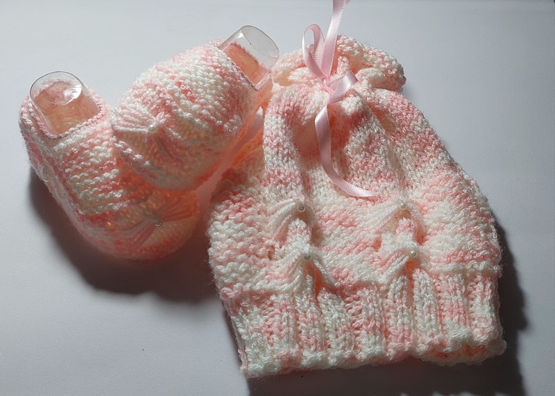 Conjuntinho de tricô para bebê, formado por gorrinho e sapatinho, feita com amor e cuidado, visando proporcionar elegância, conforto e aconchego para o seu bebê.