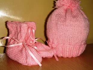 Conjuntinho rosa (gorrinho e sapatinho) para bebê: R$ 80,00