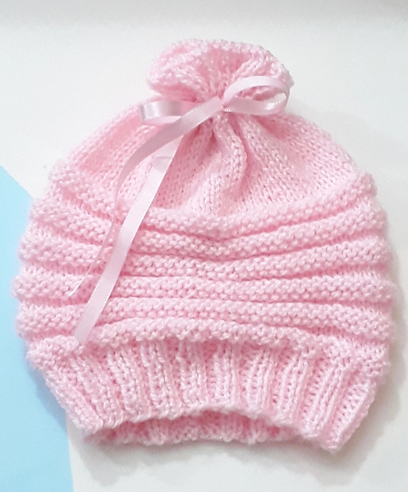 Gorrinho tricô bebê em pontos gomos