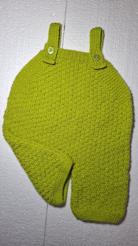 Linda jardineira feita em tricô a mão, com lã antialérgica e macia e indicada para bebês acima de 3 meses.