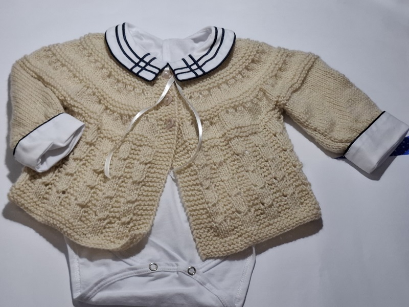 Casaquinho de tricô para bebê feito com amor e cuidado visando proporcionar elegância, conforto e aconchego para o seu bebê.