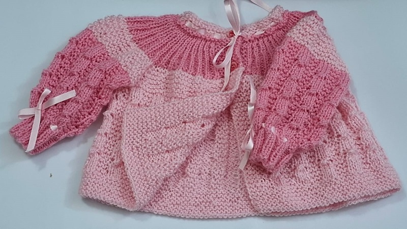 Casaquinho em tricô manual: a suavidade dos tons de rosa