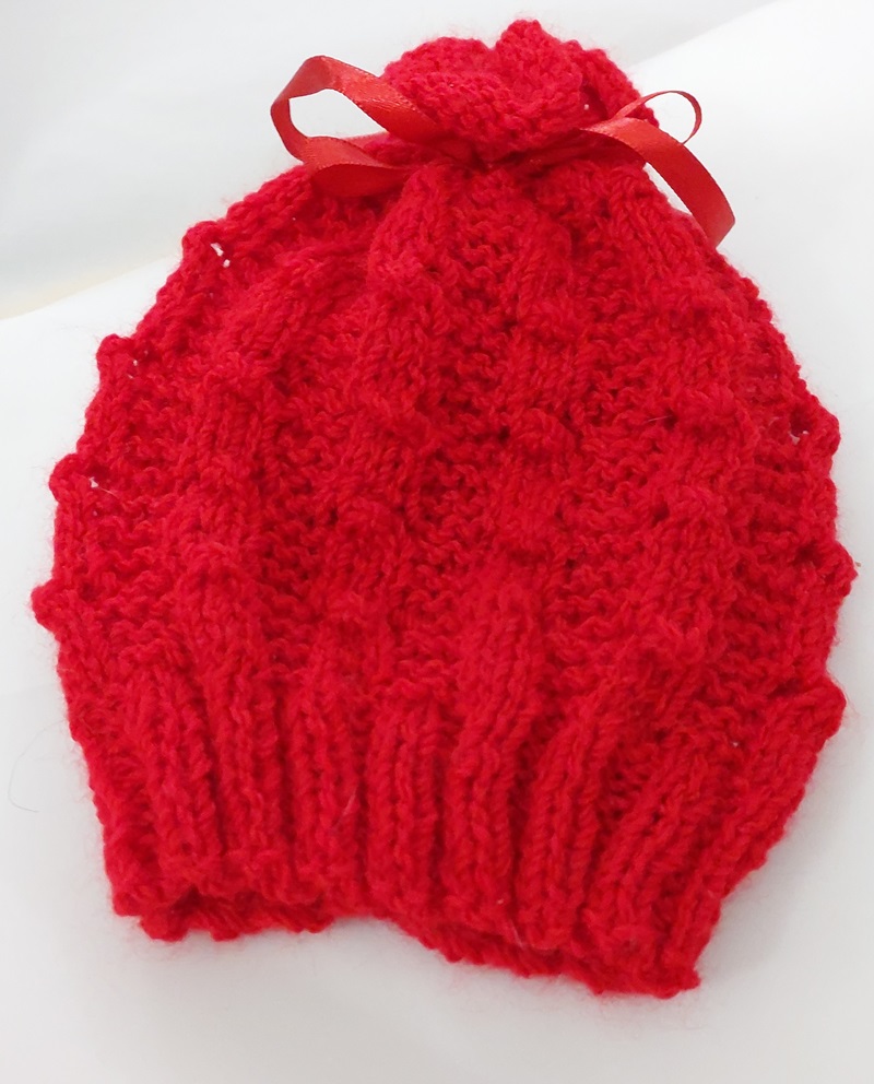 Gorrinho vermelho em tricô à mão para bebê