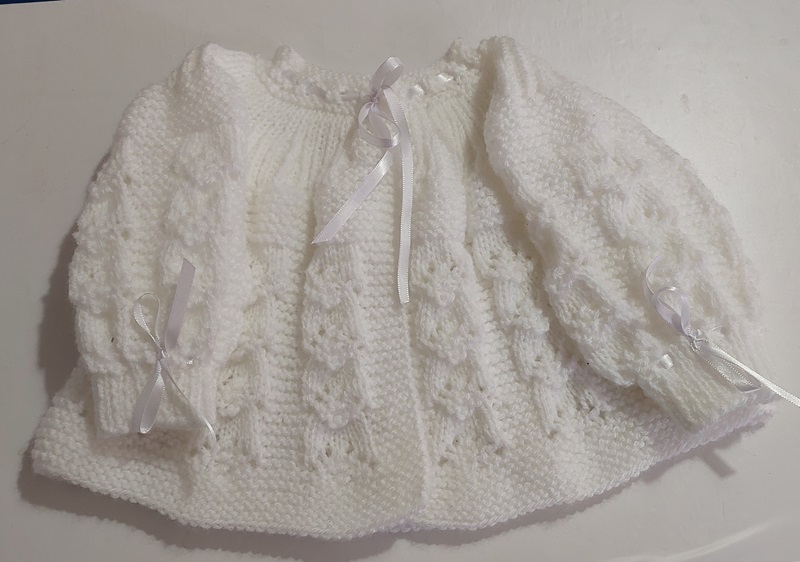 Casaquinho branco em tricô manual: perfeito para saída de maternidade