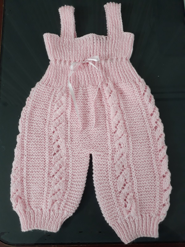 Linda jardineira feita em tricô a mão, com lã antialérgica e macia e indicada para bebês acima de 3 meses.