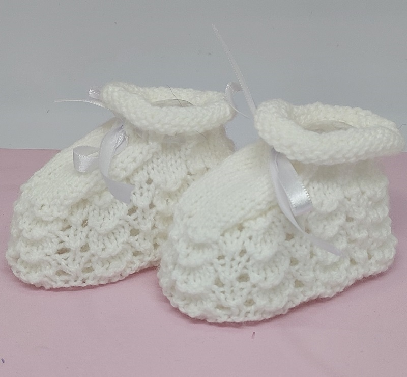 Fiz com lã para bebê e agulhas retas 2,5 nas cores cinza com branco.